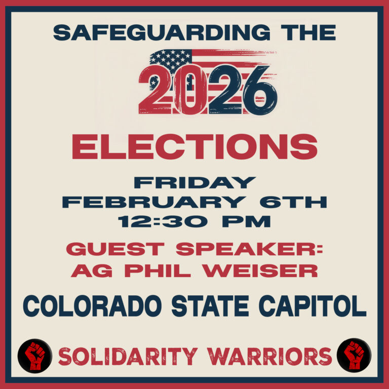 Join Solidarity Warriors, Indivisible Lakewood, and others to hear AG Phil Weiser speak in response to this letter re: safeguarding the 2026 election. RSVP